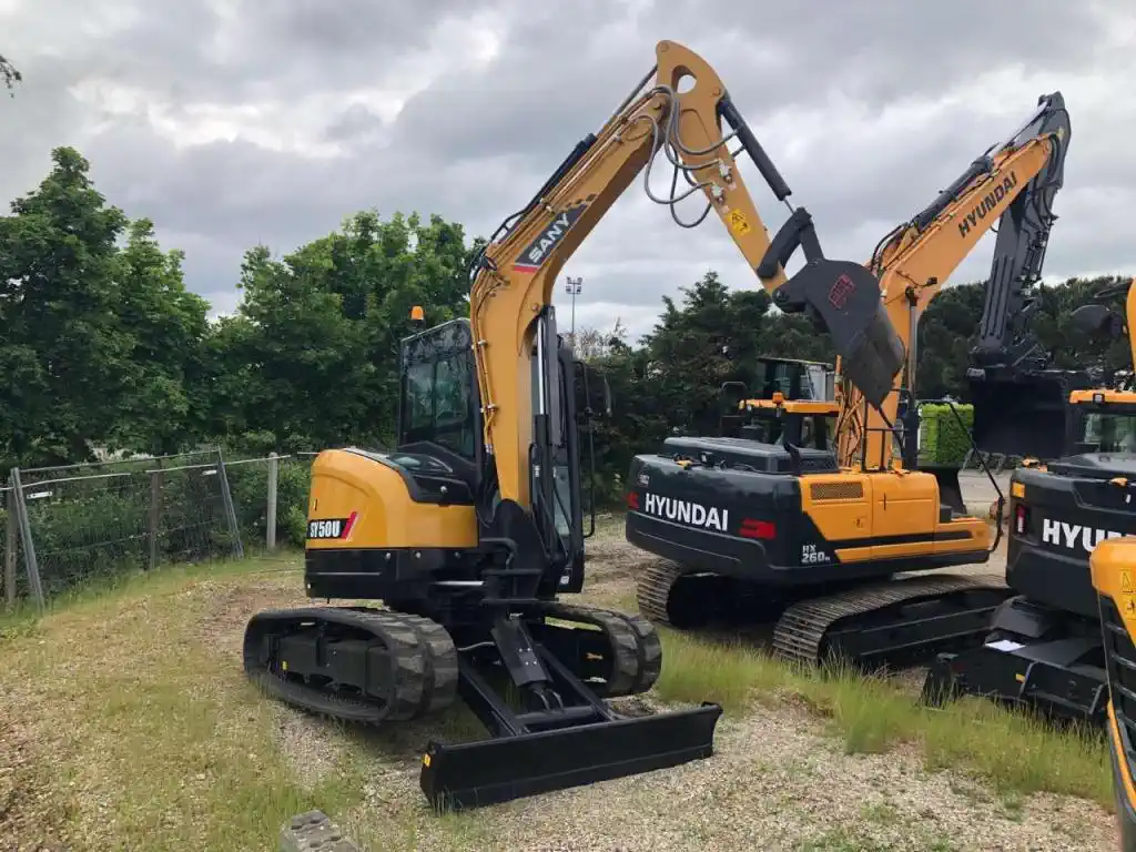 Description : Cabine, chenilles en caoutchouc, lame, ligne BRH à double effet proportionnelle, ligne de rotation à double effet proportionnelle, attache rapide mécanique, 3 godets.