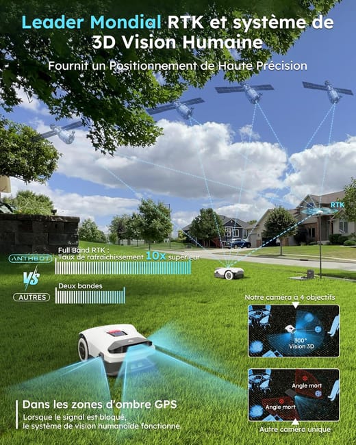 Robot Tondeuse sans Fil Périphérique – 900㎡, Full Band RTK+4 Yeux IA Vision Tondeuse Robot Gazon, Auto Cartographie, 20 Multi-Zone, Évitement d’obstacles, ANTHBOT Genie600