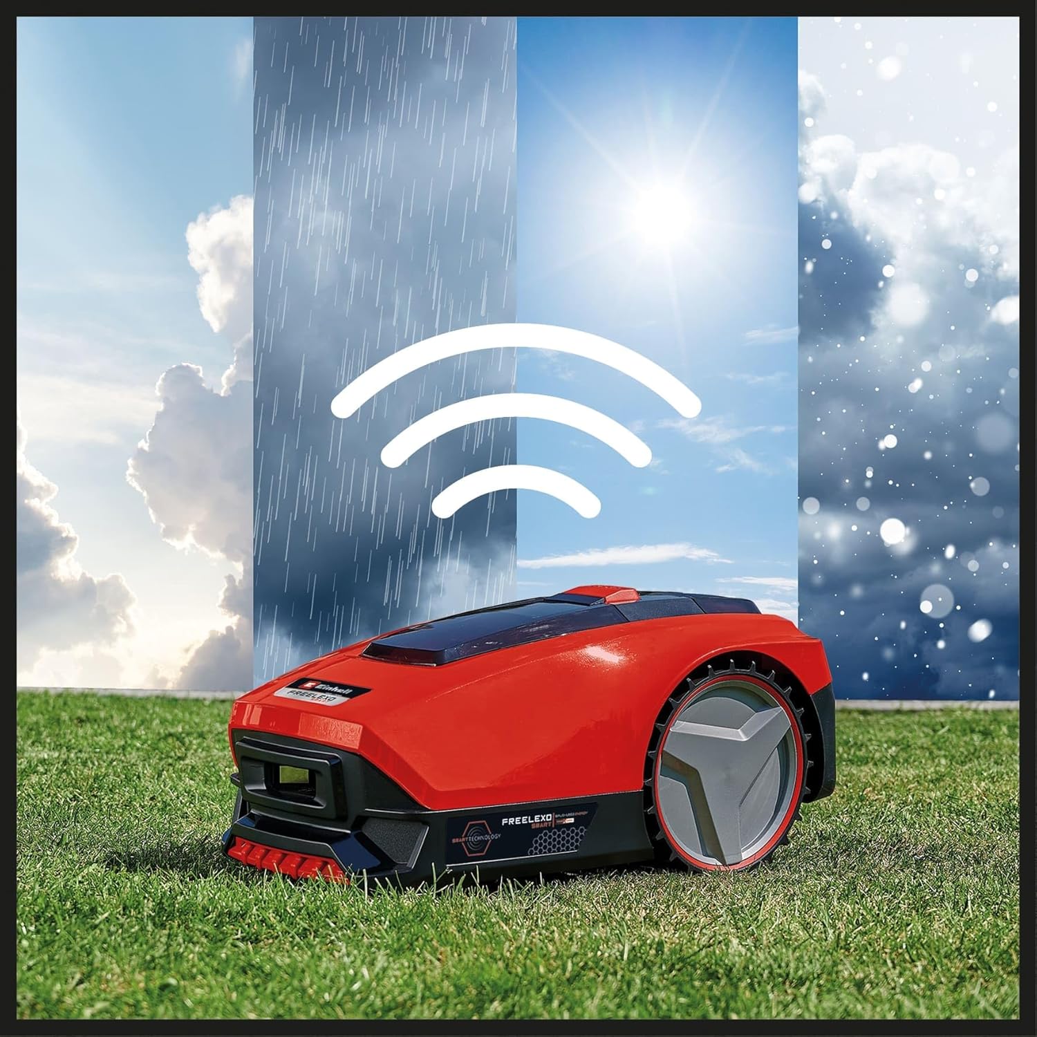 Le robot-tondeuse FREELEXO SMART 750 fait partie de la série Power X-Change, qui utilise une batterie lithium-ion de 3,0 Ah compatible avec tous les appareils de la gamme. Il dispose d’une fonction SMART qui permet de déterminer automatiquement les heures de tonte en fonction de la superficie et des conditions météorologiques. Grâce à une connexion Internet mobile, il peut être contrôlé à distance et se connecte à d’autres appareils SMART d’Einhell via une application mobile.